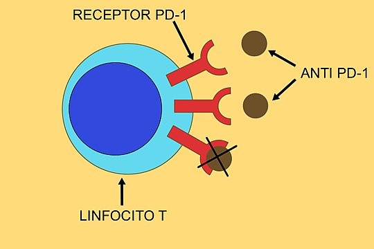 Bloquea la acción de la proteína PD-1. En condiciones normales, esta proteína impide que los linfocitos T ataquen los tejidos inflamados y las células cancerosas. Al inhibir la proteína PD-1, facilita que los linfocitos T puedan atacar y destruir las células malignas. La proteína PD-1 es un receptor que pertenecen a la familia de proteínas de control inmune y su función es modular la respuesta de los linfocitos T y evitar una respuesta autoinmune excesiva.